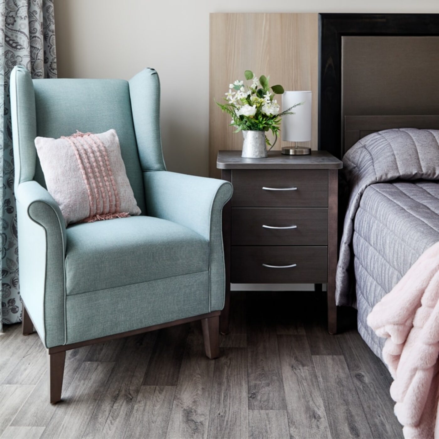 In dining areas, appropriately proportioned seating supports independence and social participation. Within bedrooms, supportive chairs and bedside furniture assist mobility while maintaining comfort and familiarity. Even simple interventions, such as occasional seating along corridors, provide places to rest and help reduce fatigue throughout the day.
