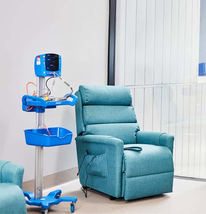 Flexibility was also incredibly important for the space, with staff needing to be able to move furniture quickly and easily to suit a wide variety of patients. Achieving this was simple, with the team selecting furniture that could be easily rolled out of the way or reconfigured by staff.