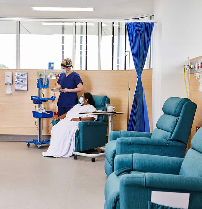 But it’s not just about looks – as a health facility, Cura Day Hospitals Group needed every furniture piece to be safe, hygienic and fit-for-purpose. Each of the custom fabrics used are moisture-barrier fabrics for easy cleaning, with anti-microbial lacquers used to reduce the risk of infection. For the patient, comfort is not overlooked with every curve, cushion and arm rest designed with their needs in mind.